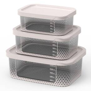 Kit 3 potes para alimentos transp. Retangular p/m/g com tampa