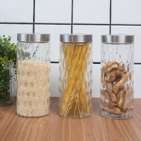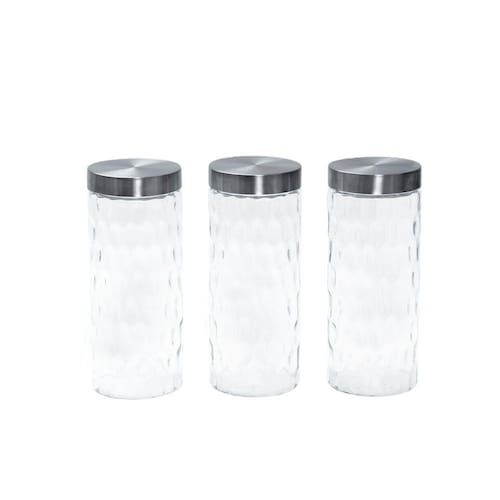 "Conheça o kit de 3 potes bolhas 2200ml de vidro com tampa inox redondo da Mozcada.
