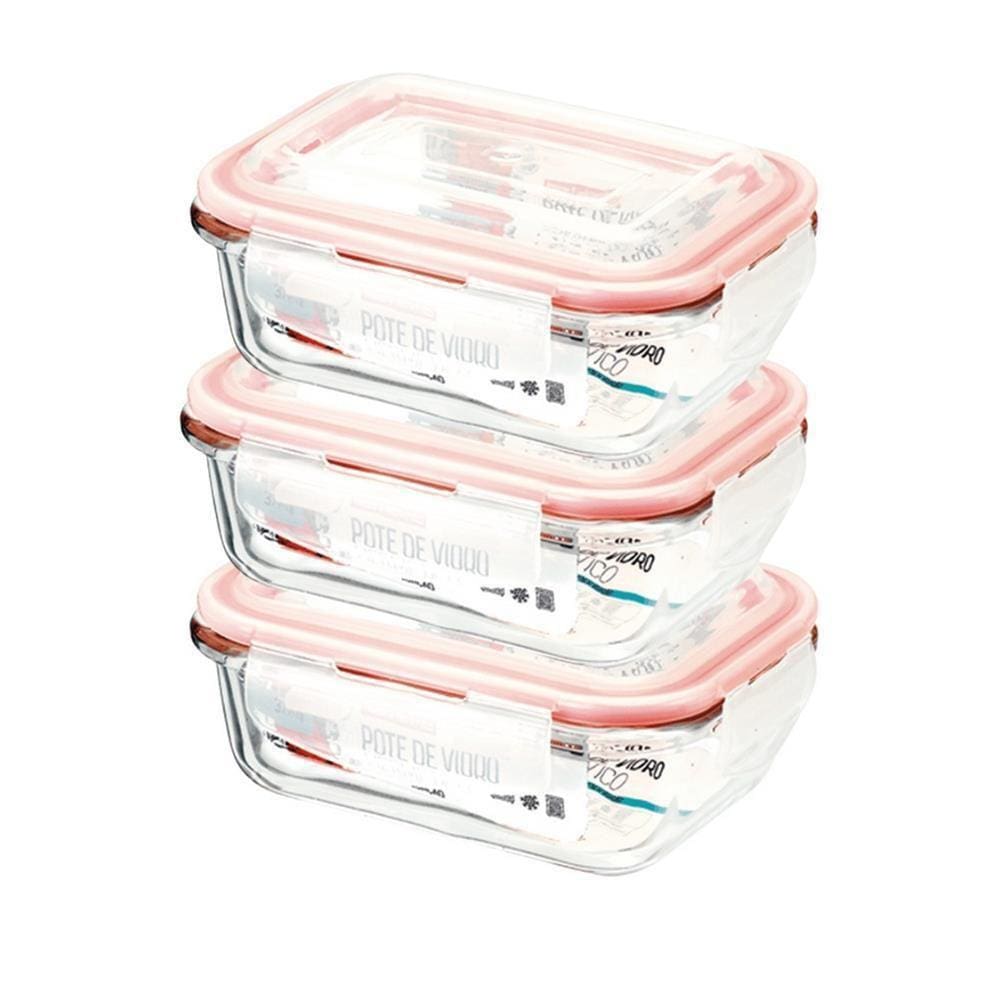 kit 3 potes de vidro com trava
