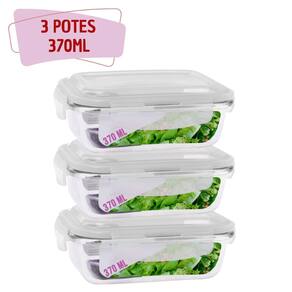 Kit 3 Potes de Vidro Hermetico 370ml 4 Travas Mantimentos Marmita - Kit de 3 potes de vidro herméticos para mantimentos