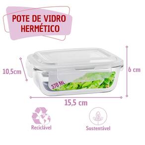 Pote de Vidro com Tampa Hermética Retangular - 370ml