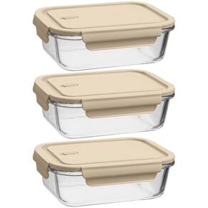 Kit 3 Potes de Vidro Herméticos 1,04L Capuccino UZ Porta Mantimentos Marmita Borossilicato.