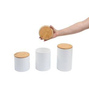 "Conheça o Kit de 3 potes dolomita com tampa de bambu zig zag 900ml, 1,2L e 1,5L da OIKOS.Prático, versátil resistente e decorativo, é ótimo para guardar e organizar itens de banheiro, acessórios pequenos e objetos variados e produtos de cozinha. Possui design moderno e cor que transformam qualquer ambiente e harmonizam com diversos estilos de decoração.É de dolomita, um material durável e que deriva de rochas sedimentares dolomíticas. Para limpar basta utilizar um pano úmido. Não deixe imerso na água e mantenha em local arejado.Leve funcionalidade e modernidade para sua casa!O kit contém:1 pote dolomita com tampa de bambu zig zag 900ml1 pote dolomita com tampa de bambu zig zag 1,2L1 pote dolomita com tampa de bambu zig zag 1,5L"
