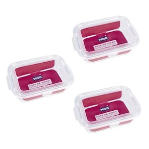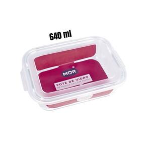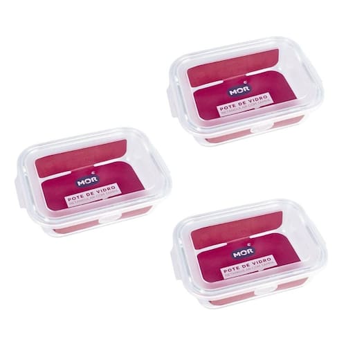 Kit 3 Potes Hermético Marmita de Vidro Retangular 640ml Mor