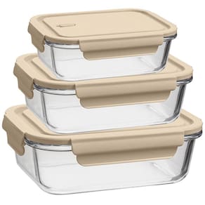 Kit 3 Potes Herméticos de Vidro Borossilicato P M G Porta Mantimentos Marmitas Capuccino UZ Retangulares.