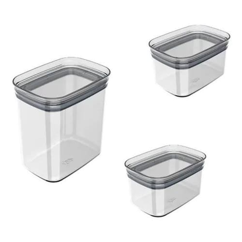 Kit 3 potes herméticos doces e capsulas café escritório f6046 Cor: transparente F6036 Maple decor Descrição O pote hermético é ideal para guardar mantimentos. A tampa com vedação em silicone bloqueia a entrada do ar, protegendo o alimento do ambiente externo, auxiliando na conservação dos alimentos, mantendo-os com sua textura e sabor por mais tempo. O organizador hermético com bpa free armazena e conserva os alimentos, e por ser transparente, tem a facilidade de visualização do que está armazenado sem precisar abrir o recipiente. Além de ajudar na organização do armário da sua cozinha. O pote com vedação é perfeito para armazenar mantimentos como biscoitos, cereais e variados tipos de alimentos com estilo e segurança, para deixar seu dia a dia na cozinha ainda mais prático e moderno. Organizador hérmeticos block Pode ser montados em blocos, empilháveis. Dicas de uso, organização de doces e capsulas de café, para escritórios, e mesa posta. Adaptando a qualquer tipo de armário, e varias organizações. Como alimentos da cozinha, doces, escritórios, capsulas de café Pequenos cuidados com seu lar fazem toda a diferença. Vedação hermética eficiente. Conserva os alimentos por mais tempo. Empilhável e modular Conjunto block - 3 peças Contendo 1- organizador hermético block retangular 1,5l 10,05 x 15 x 16 1- organizador hermético block retangular 0,65 l 10,05 x 15 x 8,5 1- organizador hermético block retangular 0,65 l 10,05 x 15 x 8,5 Cuidados: - não lavar com materiais abrasivos; - não utilizar em micro-ondas e lava louças; - não utilizar no congelador; Material: - poliestireno; - silicone.