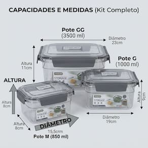 CAPACIDADES E MEDIDAS (Kit Completo)