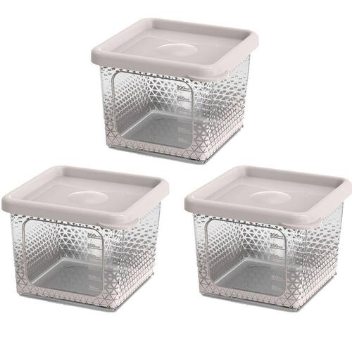 Kit 3 potes para alimentos transparente prisma 430ml c/tampa Conjunto pote quadrado p potte - ad0109