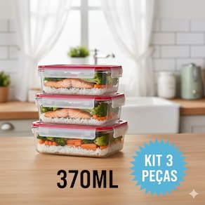 Organize sua cozinha com elegância e segurança! Este kit com 3 potes de vidro retangular de 370ml é perfeito para armazenar alimentos frescos, temperos ou marmitas, mantendo tudo sempre protegido e livre de odores.