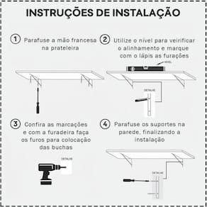 - Capacidade de Peso: A capacidade da prateleira dependerá da parede onde for instalada