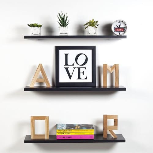 Kit 3 Prateleiras 40x15 MDF Preto com Suporte Invisível - Características do Produto Marca: Decoralar Fabricação Própria ; Quantidade de Prateleiras: 3 Cor: Preto; Fixação na Parede: Buchas e Parafusos de Suporte Invisível Dimensões: 40x15cm; Espessura: 15mm; Material: MDF de alta qualidade; de 30 dias contra defeitos de fabricação; *os itens decorativos mostrados na imagem, não acompanham o produto Marca: Não Informado