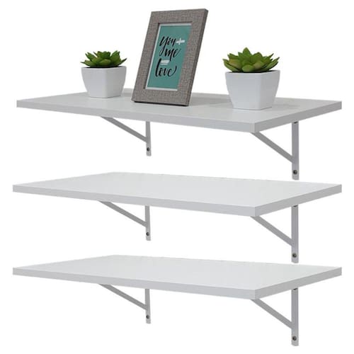 Kit 3 Prateleiras 80 x 30cm Branca Com Mão Francesa. A prateleira Crie Fácil foi desenvolvida pensando em deixar o seu ambiente mais organizado e criativo de forma prática e simples. Produto produzido em MDP de alta qualidade garantindo resistência e durabilidade. A prateleira é acompanhada de mão francesa para fixação na parede. Cor: Branco. Tamanho: 80 x 30cm. Material: Madeira MDP. Fixação: mão francesa (2 unidades por prateleiras). Instruções de uso e instalação: Para fácil limpeza, utilize pano levemente umedecido. Não utilizar produtos químicos ou abrasivos. Acompanha embalagem com as instruções de montagem e fixação. *Observação: todos os itens de decoração das fotos não acompanham o produto