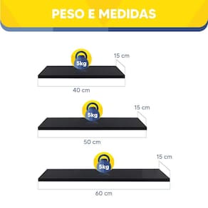 Kit 3 Prateleiras Preta 40, 50 e 60cm Sala Quarto Decoração foi desenvolvida pensando em deixar o seu ambiente mais criativo e bonito de forma simples e prático.