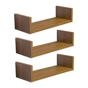 Kit 3 Prateleiras U 60 x 10cm Freijó Suporte Invisível - Marrom