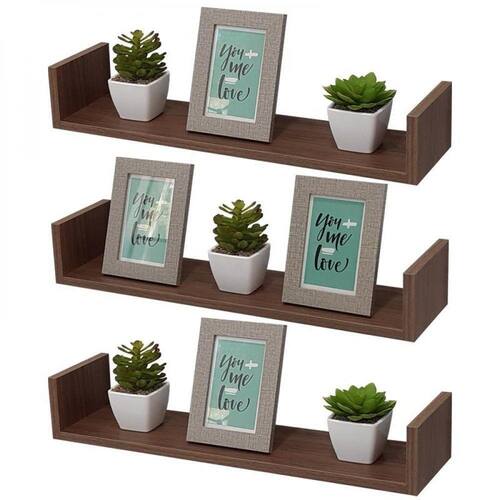 Kit 3 Prateleiras U 70 X 25cm Nogal Suporte Invisível - Marrom