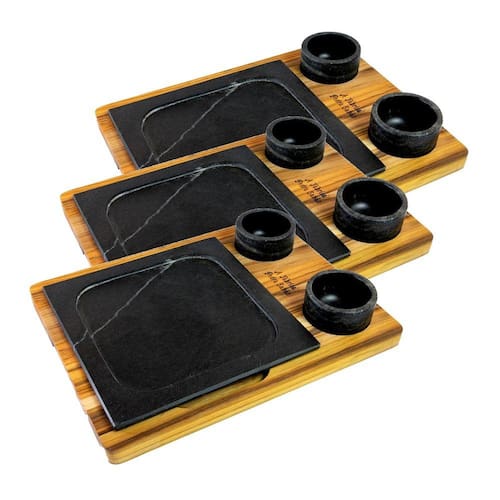 Kit 3 Prato com 06 Molheiras Pedra Sabão e Suporte P 20x20cm