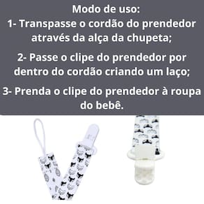 Com o clipe fácil de prender na roupinha do bebê, você nunca mais terá que se preocupar com a chupeta caindo no chão. Mantenha a chupeta sempre limpa e acessível ao seu bebê, evitando quedas, perdas ou contaminações indesejadas.