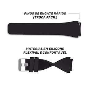 Kit 3 pulseiras para gtr 2 ou gtr 2e troca fácil Atenção: somente as pulseiras, não acompanha relógioElas servem em ambos os modelos ( gtr2 ou gtr2e) Características Material: silicone macio, confortável e flexívelComprimento: 125mm - 97mm com a fivelaEncaixe: 22mm com pinos de engate rápido (troca fácil)Fivela: aço inoxidável Conteúdo da embalagem 3x pulseiras para gtr 2 ou gtr 2e troca fácilCores: preta, cinza e azul marinho Despachamos rápido Enviamos para todo o brasil Informações importantes 1 - os itens e acessórios deste anúncio não possuem relação com a marca do fabricante do relógio, smartwatch ou smartwatch.2 - as imagens do anúncio são ilustrativas, ou seja, pode ocorrer leve variação entre o que é visualizado aqui e o produto físico.