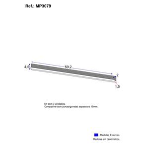 Dimensões de cada puxador: Altura: 4,5cm | Largura: 59,2cm | Profundidade: 2cm * Você pode consultar as medidas detalhadas na imagem técnica do produto. * Tamanho indicado para os parafusos: 3,5x12mm. * Quantidade total necessária de parafusos: 9.