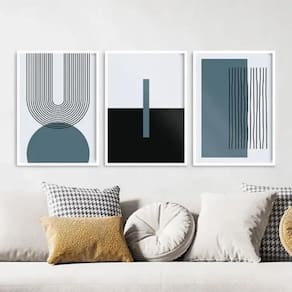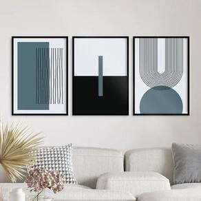 Kit 3 quadros abstrato azul petróleo linhas arcos 45x34cm Cor: moldura preta Informações do produto tire todas as suas dúvidas no descritivo abaixo: decoração para quarto, sala, cozinha, escritório, área gourmet e muito mais. Chega de paredes vazias. Medidas - cada peça tem 45x34cm a3 . Material do papel - papel fotográfico brilhante de altíssima resolução acabamento - todos os quadros são acompanhados de uma película de acetato para proteção da imagem. - os quadros são embalados de forma segura com plástico bolha com camada dupla de acordo com o tamanho dos quadros. - de 3 meses. Meu quadro chegou. Como posso fixá-lo Você precisa apenas de um martelo e um prego, pois os quadros já vão acompanhados de penduradores. Esta é a forma mais indicada. Caso prefira, você pode utilizar uma fita dupla face neste caso, sugerimos de alta qualidade para evitar que descole e seu quadro caia . Como posso limpar meu quadro A limpeza é feita como um móvel comum da sua casa. Apenas um pano seco ou espanador são suficientes para tal Marca: Não Informado