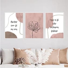 Kit 3 quadros abstratos andar com fé eu vou 33x24cm - com vidro Moldura: madeira preta Informações do produto tire todas as suas dúvidas no descritivo abaixo: decoração para quarto, sala, cozinha, escritório, área gourmet e muito mais. Chega de paredes vazias medidas - cada peça tem 33x24cm a4 . Material do papel - papel fotográfico brilhante de altíssima resolução acabamento - todos os quadros são acompanhados de vidro para proteção da imagem. - moldura em madeira maciça na cor preta e pendurador . - os quadros são embalados de forma segura com plástico bolha com camada dupla de acordo com o tamanho dos quadros. Garantia - garantia de 3 meses. Meu quadro chegou. Como posso fixá-lo Você precisa apenas de um martelo e um prego, pois os quadros já vão acompanhados de penduradores. Esta é a forma mais indicada. Como posso limpar meu quadro A limpeza é feita como um móvel comum da sua casa. Apenas um pano seco ou espanador são suficientes para tal Ean: 7894968126932