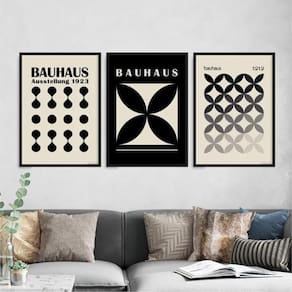 O design abstrato dos quadros Bauhaus traz uma atmosfera contemporânea e única para o ambiente. Com tonalidades em preto e cinza, essas obras de arte se tornam verdadeiros destaques na decoração, agregando personalidade e estilo ao espaço.