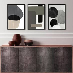 Kit 3 quadros abstratos decoração industrial- cinza e preto 45x34cm Moldura: madeira branca Informações do produto tire todas as suas dúvidas no descritivo abaixo: decoração para quarto, sala, cozinha, escritório, área gourmet e muito mais. Chega de paredes vazias. Medidas - cada peça tem 45x34cm a3 . Material do papel - papel fotográfico brilhante de altíssima resolução acabamento - todos os quadros são acompanhados de uma película de acetato para proteção da imagem. - os quadros são embalados de forma segura com plástico bolha com camada dupla de acordo com o tamanho dos quadros. Garantia - garantia de 3 meses. Meu quadro chegou. Como posso fixá-lo Você precisa apenas de um martelo e um prego, pois os quadros já vão acompanhados de penduradores. Esta é a forma mais indicada. Caso prefira, você pode utilizar uma fita dupla face neste caso, sugerimos de alta qualidade para evitar que descole e seu quadro caia . Como posso limpar meu quadro A limpeza é feita como um móvel comum da sua casa. Apenas um pano seco ou espanador são suficientes para tal Ean: 7890484294520