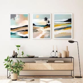 Kit 3 quadros abstratos praia estilo pintura 24x18cm - com vidro Cor: moldura branca Informações do produto tire todas as suas dúvidas no descritivo abaixo: decoração para quarto, sala, cozinha, escritório, área gourmet e muito mais. Chega de paredes vazias medidas - cada peça tem 24x18cm a5 . Material do papel - papel fotográfico brilhante de altíssima resolução acabamento - todos os quadros são acompanhados de vidro para proteção da imagem. - moldura em madeira maciça na cor preta ou branca conforme produto escolhido e pendurador . - os quadros são embalados de forma segura com plástico bolha com camada dupla de acordo com o tamanho dos quadros. Garantia - garantia de 3 meses. Meu quadro chegou. Como posso fixá-lo Você precisa apenas de um martelo e um prego, pois os quadros já vão acompanhados de penduradores. Esta é a forma mais indicada. Como posso limpar meu quadro A limpeza é feita como um móvel comum da sua casa. Apenas um pano seco ou espanador são suficientes para tal