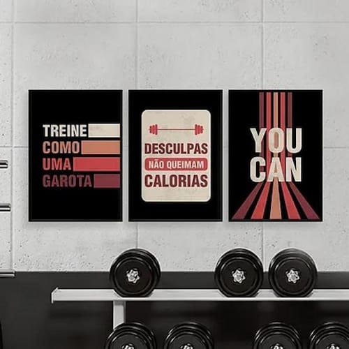 Kit 3 quadros academia feminino treine como uma garota 33x24cm Moldura: madeira preta Informações do produto tire todas as suas dúvidas no descritivo abaixo: decoração para quarto, sala, cozinha, escritório, área gourmet e muito mais. Chega de paredes vazias medidas - cada peça tem 33x24cm a4 . Material do papel - papel fotográfico brilhante de altíssima resolução acabamento - todos os quadros são acompanhados de uma película de acetato para proteção da imagem. - os quadros são embalados de forma segura com plástico bolha com camada dupla de acordo com o tamanho dos quadros. Garantia - garantia de 3 meses. Meu quadro chegou. Como posso fixá-lo Você precisa apenas de um martelo e um prego, pois os quadros já vão acompanhados de penduradores. Esta é a forma mais indicada. Caso prefira, você pode utilizar uma fita dupla face neste caso, sugerimos de alta qualidade para evitar que descole e seu quadro caia . Como posso limpar meu quadro A limpeza é feita como um móvel comum da sua casa. Apenas um pano seco ou espanador são suficientes para tal Ean: 7895158439696