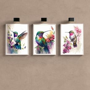 O Kit 3 Quadros Decorativos Aquarelas Beija-Flores 45X34Cm é perfeito para dar um toque especial na decoração do seu quarto, sala, cozinha, escritório, área gourmet e muito mais. Com medidas de 45x34cm A3 , cada peça é confeccionada em papel fotográfico brilhante de altíssima resolução, garantindo uma imagem nítida e de qualidade.