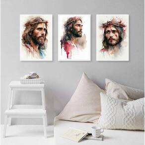 Kit 3 quadros aquarelas face de jesus 24x18cm Moldura: madeira preta Informações do produto tire todas as suas dúvidas no descritivo abaixo: decoração para quarto, sala, cozinha, escritório, área gourmet e muito mais. Chega de paredes vazias medidas - cada peça tem 24x18cm a5 . Material do papel - papel fotográfico brilhante de altíssima resolução acabamento - todos os quadros são acompanhados de uma película de acetato para proteção da imagem. - os quadros são embalados de forma segura com plástico bolha com camada dupla de acordo com o tamanho dos quadros. Garantia - garantia de 3 meses. Meu quadro chegou. Como posso fixá-lo Você precisa apenas de um martelo e um prego, pois os quadros já vão acompanhados de penduradores. Esta é a forma mais indicada. Caso prefira, você pode utilizar uma fita dupla face neste caso, sugerimos de alta qualidade para evitar que descole e seu quadro caia . Como posso limpar meu quadro A limpeza é feita como um móvel comum da sua casa. Apenas um pano seco ou espanador são suficientes para tal