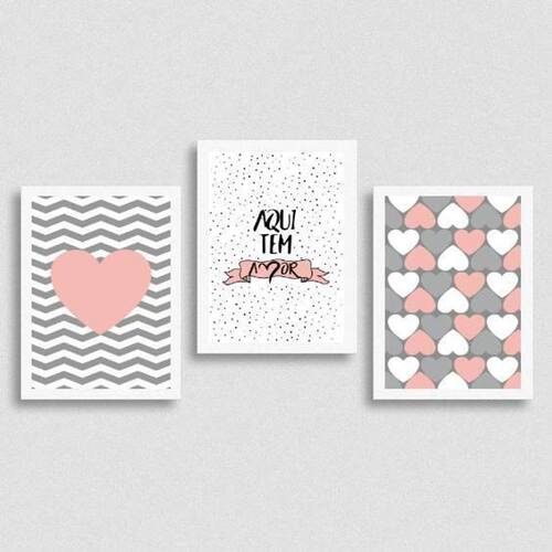 Kit 3 Quadros Aqui Tem Amor Rosa E Cinza 24X18Cm Moldura: madeira preta Informações do produto tire todas as suas dúvidas no descritivo abaixo: decoração para quarto, sala, cozinha, escritório, área gourmet e muito mais. Chega de paredes vazias medidas - cada peça tem 24x18cm a5 .