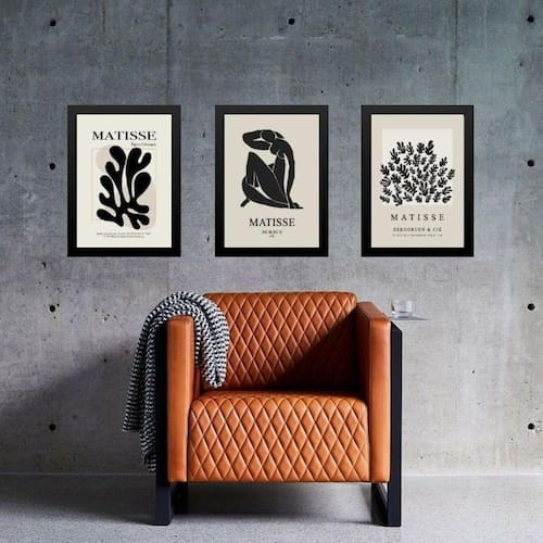 Kit 3 quadros arte matisse preto e nude 33x24cm - com vidro Moldura: madeira branca Informações do produto tire todas as suas dúvidas no descritivo abaixo: decoração para quarto, sala, cozinha, escritório, área gourmet e muito mais. Chega de paredes vazias medidas - cada peça tem 33x24cm a4 . Material do papel - papel fotográfico brilhante de altíssima resolução acabamento - todos os quadros são acompanhados de vidro para proteção da imagem. - moldura em madeira maciça na cor preta ou branca conforme produto escolhido e pendurador . - os quadros são embalados de forma segura com plástico bolha com camada dupla de acordo com o tamanho dos quadros. Garantia - garantia de 3 meses. Meu quadro chegou. Como posso fixá-lo Você precisa apenas de um martelo e um prego, pois os quadros já vão acompanhados de penduradores. Esta é a forma mais indicada. Como posso limpar meu quadro A limpeza é feita como um móvel comum da sua casa. Apenas um pano seco ou espanador são suficientes para tal