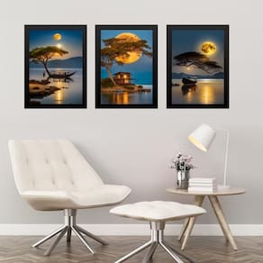 Kit 3 quadros artes paisagens rio lua cheia 33x24cm Cor: moldura branca Informações do produto tire todas as suas dúvidas no descritivo abaixo: decoração para quarto, sala, cozinha, escritório, área gourmet e muito mais. Chega de paredes vazias medidas - cada peça tem 33x24cm a4 . Material do papel - papel fotográfico brilhante de altíssima resolução acabamento - todos os quadros são acompanhados de uma película de acetato para proteção da imagem. - os quadros são embalados de forma segura com plástico bolha com camada dupla de acordo com o tamanho dos quadros. - de 3 meses. Meu quadro chegou. Como posso fixá-lo Você precisa apenas de um martelo e um prego, pois os quadros já vão acompanhados de penduradores. Esta é a forma mais indicada. Caso prefira, você pode utilizar uma fita dupla face neste caso, sugerimos de alta qualidade para evitar que descole e seu quadro caia . Como posso limpar meu quadro A limpeza é feita como um móvel comum da sua casa. Apenas um pano seco ou espanador são suficientes para tal