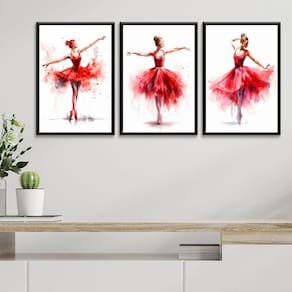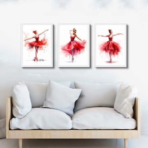 Kit 3 quadros bailarinas vermelhas - aquarela 24x18cm Cor: moldura branca Informações do produto tire todas as suas dúvidas no descritivo abaixo: decoração para quarto, sala, cozinha, escritório, área gourmet e muito mais. Chega de paredes vazias medidas - cada peça tem 24x18cm a5 . Material do papel - papel fotográfico brilhante de altíssima resolução acabamento - todos os quadros são acompanhados de uma película de acetato para proteção da imagem. - os quadros são embalados de forma segura com plástico bolha com camada dupla de acordo com o tamanho dos quadros. Garantia - garantia de 3 meses. Meu quadro chegou. Como posso fixá-lo Você precisa apenas de um martelo e um prego, pois os quadros já vão acompanhados de penduradores. Esta é a forma mais indicada. Caso prefira, você pode utilizar uma fita dupla face neste caso, sugerimos de alta qualidade para evitar que descole e seu quadro caia . Como posso limpar meu quadro A limpeza é feita como um móvel comum da sua casa. Apenas um pano seco ou espanador são suficientes para tal