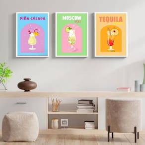 Kit 3 quadros para bar drinks e coquetéis 24x18cm - com vidro