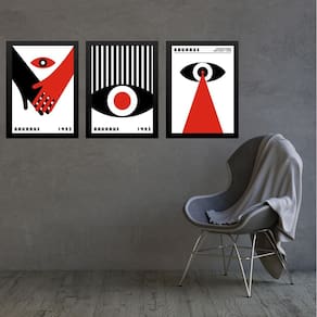 Kit 3 quadros bauhaus olhos vermelho e preto 33x24cm - com vidro Cor: moldura branca Informações do produto tire todas as suas dúvidas no descritivo abaixo: decoração para quarto, sala, cozinha, escritório, área gourmet e muito mais. Chega de paredes vazias medidas - cada peça tem 33x24cm a4 . Material do papel - papel fotográfico brilhante de altíssima resolução acabamento - todos os quadros são acompanhados de vidro para proteção da imagem. - moldura em madeira maciça na cor preta ou branca conforme produto escolhido e pendurador . - os quadros são embalados de forma segura com plástico bolha com camada dupla de acordo com o tamanho dos quadros. - de 3 meses. Meu quadro chegou. Como posso fixá-lo Você precisa apenas de um martelo e um prego, pois os quadros já vão acompanhados de penduradores. Esta é a forma mais indicada. Como posso limpar meu quadro A limpeza é feita como um móvel comum da sua casa. Apenas um pano seco ou espanador são suficientes para tal