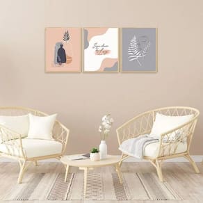 Kit 3 Quadros Boho Formas Rosto Mulher Frases Motivação Luz