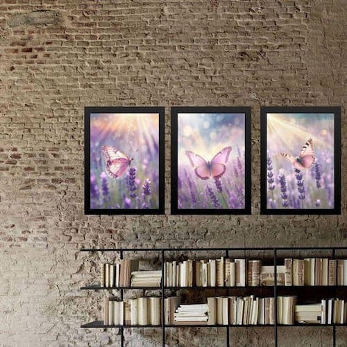 Kit 3 quadros borboletas rosas lavanda 24x18cm - com vidro Moldura: madeira preta Informações do produto tire todas as suas dúvidas no descritivo abaixo: decoração para quarto, sala, cozinha, escritório, área gourmet e muito mais. Chega de paredes vazias medidas - cada peça tem 24x18cm a5 . Material do papel - papel fotográfico brilhante de altíssima resolução acabamento - todos os quadros são acompanhados de vidro para proteção da imagem. - moldura em madeira maciça na cor preta ou branca conforme produto escolhido e pendurador . - os quadros são embalados de forma segura com plástico bolha com camada dupla de acordo com o tamanho dos quadros. Garantia - garantia de 3 meses. Meu quadro chegou. Como posso fixá-lo Você precisa apenas de um martelo e um prego, pois os quadros já vão acompanhados de penduradores. Esta é a forma mais indicada. Como posso limpar meu quadro A limpeza é feita como um móvel comum da sua casa. Apenas um pano seco ou espanador são suficientes para tal