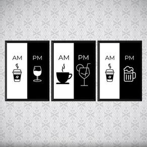 Kit 3 quadros café bebidas alcóolicas- am pm 45x34cm Moldura: madeira branca Informações do produto tire todas as suas dúvidas no descritivo abaixo: decoração para quarto, sala, cozinha, escritório, área gourmet e muito mais. Chega de paredes vazias. Medidas - cada peça tem 45x34cm a3 . Material do papel - papel fotográfico brilhante de altíssima resolução acabamento - todos os quadros são acompanhados de uma película de acetato para proteção da imagem. - os quadros são embalados de forma segura com plástico bolha com camada dupla de acordo com o tamanho dos quadros. - de 3 meses. Meu quadro chegou. Como posso fixá-lo Você precisa apenas de um martelo e um prego, pois os quadros já vão acompanhados de penduradores. Esta é a forma mais indicada. Caso prefira, você pode utilizar uma fita dupla face neste caso, sugerimos de alta qualidade para evitar que descole e seu quadro caia . Como posso limpar meu quadro A limpeza é feita como um móvel comum da sua casa. Apenas um pano seco ou espanador são suficientes para tal Marca: Não Informado