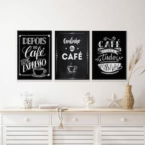 O Kit 3 Quadros Cantinho Do Café Tipografia Giz 33X24Cm Vidro é perfeito para quem adora café e deseja decorar o ambiente com muito estilo. Composto por três quadros com tipografia em giz, esse kit é ideal para decorar quartos, salas, cozinhas, escritórios, áreas gourmet e muito mais.