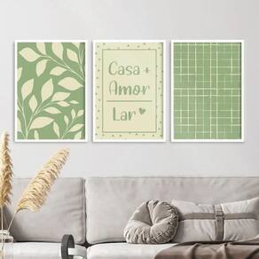 *Kit 3 Quadros Casa Amor Lar Plantas Verde 45X34Cm - a decoração que você sempre sonhou.