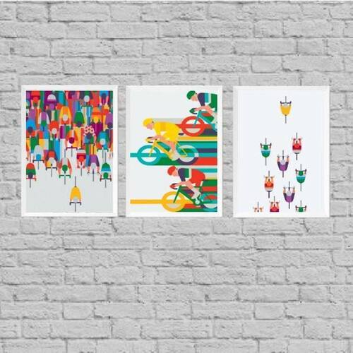 Kit 3 quadros ciclistas ciclismo 45x34cm Moldura: madeira branca Informações do produto Decoração para quarto, sala, cozinha, escritório, área gourmet e muito mais. Chega de paredes vazias Medidas - cada peça tem 45x34cm a3 . Material do papel - papel fotográfico brilhante de altíssima resolução acabamento - todos os quadros são acompanhados de uma película de acetato para proteção da imagem. - os quadros são embalados de forma segura com plástico bolha com camada dupla de acordo com o tamanho dos quadros. Garantia - garantia de 3 meses. Meu quadro chegou. Como posso fixá-lo Você precisa apenas de um martelo e um prego, pois os quadros já vão acompanhados de penduradores. Esta é a forma mais indicada. Caso prefira, você pode utilizar uma fita dupla face neste caso, sugerimos de alta qualidade para evitar que descole e seu quadro caia . Como posso limpar meu quadro A limpeza é feita como um móvel comum da sua casa. Apenas um pano seco ou espanador são suficientes para tal.