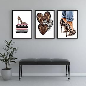 Kit 3 quadros closet - oncinha fashion 33x24cm Cor: moldura branca Informações do produto tire todas as suas dúvidas no descritivo abaixo: decoração para quarto, sala, cozinha, escritório, área gourmet e muito mais. Chega de paredes vazias medidas - cada peça tem 33x24cm a4 . Material do papel - papel fotográfico brilhante de altíssima resolução acabamento - todos os quadros são acompanhados de uma película de acetato para proteção da imagem. - os quadros são embalados de forma segura com plástico bolha com camada dupla de acordo com o tamanho dos quadros. Garantia - garantia de 3 meses. Meu quadro chegou. Como posso fixá-lo Você precisa apenas de um martelo e um prego, pois os quadros já vão acompanhados de penduradores. Esta é a forma mais indicada. Caso prefira, você pode utilizar uma fita dupla face neste caso, sugerimos de alta qualidade para evitar que descole e seu quadro caia . Como posso limpar meu quadro A limpeza é feita como um móvel comum da sua casa. Apenas um pano seco ou espanador são suficientes para tal