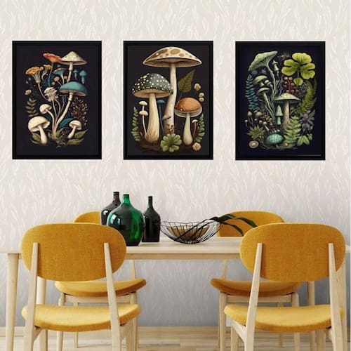 Kit 3 quadros cogumelos vintage 24x18cm - com vidro Moldura: madeira preta Informações do produto tire todas as suas dúvidas no descritivo abaixo: decoração para quarto, sala, cozinha, escritório, área gourmet e muito mais. Chega de paredes vazias medidas - cada peça tem 24x18cm a5 . Material do papel - papel fotográfico brilhante de altíssima resolução acabamento - todos os quadros são acompanhados de vidro para proteção da imagem. - moldura em madeira maciça na cor preta ou branca conforme produto escolhido e pendurador . - os quadros são embalados de forma segura com plástico bolha com camada dupla de acordo com o tamanho dos quadros. - de 3 meses. Meu quadro chegou. Como posso fixá-lo Você precisa apenas de um martelo e um prego, pois os quadros já vão acompanhados de penduradores. Esta é a forma mais indicada. Como posso limpar meu quadro A limpeza é feita como um móvel comum da sua casa. Apenas um pano seco ou espanador são suficientes para tal Marca: Não Informado