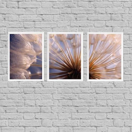 Kit 3 Quadros Complementares Dente Leão 24X18Cm Vidro Branca