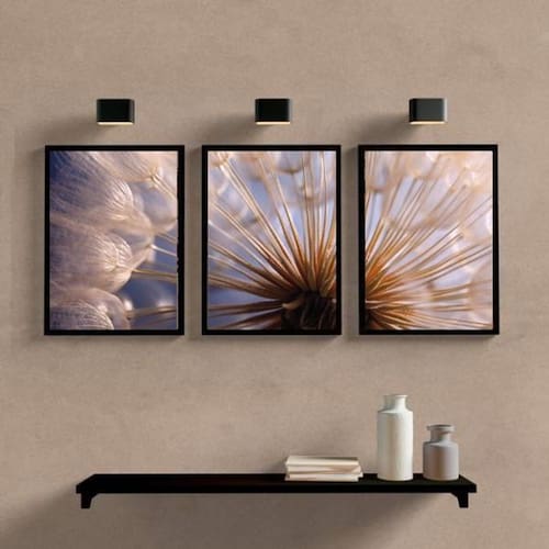Kit 3 quadros complementares dente de leão 33x24cm - com vidro Moldura: madeira preta Informações do produto Decoração para quarto, sala, cozinha, escritório, área gourmet e muito mais. Chega de paredes vazias Medidas - cada peça tem 33x24cm a4 . Material do papel - papel fotográfico brilhante de altíssima resolução acabamento - todos os quadros são acompanhados de vidro para proteção da imagem. - moldura em madeira maciça e pendurador. - os quadros são embalados de forma segura com plástico bolha com camada dupla de acordo com o tamanho dos quadros. - de 3 meses. Meu quadro chegou. Como posso fixá-lo Você precisa apenas de um martelo e um prego, pois os quadros já vão acompanhados de penduradores. Esta é a forma mais indicada. Caso prefira, você pode utilizar uma fita dupla face neste caso, sugerimos de alta qualidade para evitar que descole e seu quadro caia . Como posso limpar meu quadro A limpeza é feita como um móvel comum da sua casa. Apenas um pano seco ou espanador são suficientes para tal Ean: 7891438413325