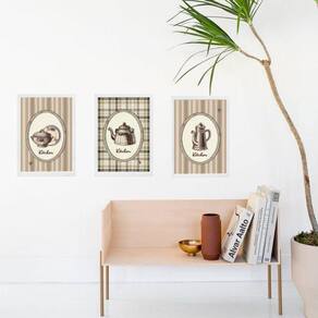 Kit 3 quadros cozinha antiguinha 24x18cm Moldura: madeira branca Informações do produto tire todas as suas dúvidas no descritivo abaixo: decoração para quarto, sala, cozinha, escritório, área gourmet e muito mais. Chega de paredes vazias medidas - cada peça tem 24x18cm a5 . Material do papel - papel fotográfico brilhante de altíssima resolução acabamento - todos os quadros são acompanhados de uma película de acetato para proteção da imagem. - os quadros são embalados de forma segura com plástico bolha com camada dupla de acordo com o tamanho dos quadros. Garantia - garantia de 3 meses. Meu quadro chegou. Como posso fixá-lo Você precisa apenas de um martelo e um prego, pois os quadros já vão acompanhados de penduradores. Esta é a forma mais indicada. Caso prefira, você pode utilizar uma fita dupla face neste caso, sugerimos de alta qualidade para evitar que descole e seu quadro caia . Como posso limpar meu quadro A limpeza é feita como um móvel comum da sua casa. Apenas um pano seco ou espanador são suficientes para tal