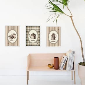 Kit 3 quadros cozinha antiguinha 33x24cm - com vidro Moldura: madeira preta Informações do produto tire todas as suas dúvidas no descritivo abaixo: decoração para quarto, sala, cozinha, escritório, área gourmet e muito mais. Chega de paredes vazias medidas - cada peça tem 33x24cm a4 . Material do papel - papel fotográfico brilhante de altíssima resolução acabamento - todos os quadros são acompanhados de vidro para proteção da imagem. - moldura em madeira maciça na cor preta ou branca conforme produto escolhido e pendurador . - os quadros são embalados de forma segura com plástico bolha com camada dupla de acordo com o tamanho dos quadros. Garantia - garantia de 3 meses. Meu quadro chegou. Como posso fixá-lo Você precisa apenas de um martelo e um prego, pois os quadros já vão acompanhados de penduradores. Esta é a forma mais indicada. Como posso limpar meu quadro A limpeza é feita como um móvel comum da sua casa. Apenas um pano seco ou espanador são suficientes para tal