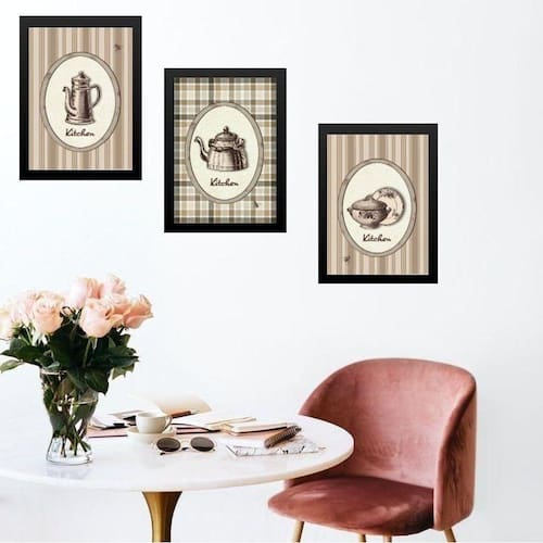 Kit 3 quadros cozinha antiguinha 33x24cm - com vidro Moldura: madeira branca Informações do produto tire todas as suas dúvidas no descritivo abaixo: decoração para quarto, sala, cozinha, escritório, área gourmet e muito mais. Chega de paredes vazias medidas - cada peça tem 33x24cm a4 . Material do papel - papel fotográfico brilhante de altíssima resolução acabamento - todos os quadros são acompanhados de vidro para proteção da imagem. - moldura em madeira maciça na cor preta ou branca conforme produto escolhido e pendurador . - os quadros são embalados de forma segura com plástico bolha com camada dupla de acordo com o tamanho dos quadros. Garantia - garantia de 3 meses. Meu quadro chegou. Como posso fixá-lo Você precisa apenas de um martelo e um prego, pois os quadros já vão acompanhados de penduradores. Esta é a forma mais indicada. Como posso limpar meu quadro A limpeza é feita como um móvel comum da sua casa. Apenas um pano seco ou espanador são suficientes para tal